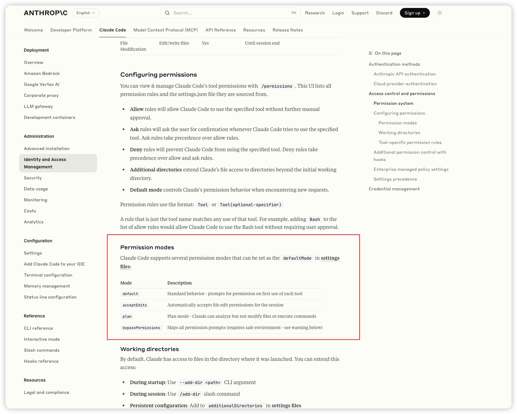 Claude Code에선 4가지의 Permission mode를 제공하는데 default, acceptEdits, plan, bypassPermissions가 있다.